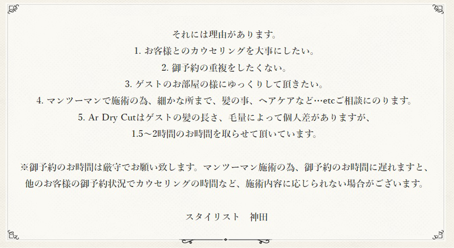 | Ar Dry Cut (1日2名様限定) | ¥7,400 |